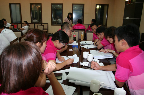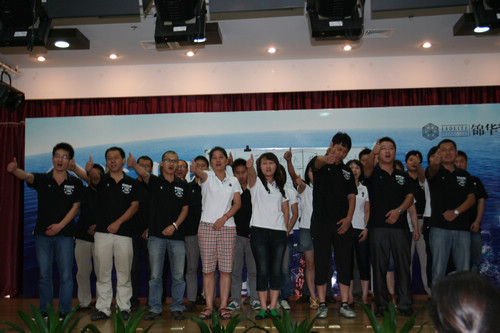 這次股東大會上,錦華的金牌培訓師——主材部曹總,給大家?guī)砹巳齻€拓展游戲:五張撲克大小PK、模仿不走樣、數(shù)數(shù)字;帶來現(xiàn)場歡樂的同時,讓所有的人都學會反思和總結;團隊的精神得到充分的體現(xiàn)?;窗卜止镜氖袌鼋?jīng)理王志波說,“在南京大區(qū),感受到了溫暖,有了回家的感覺。”這就是集體精神的魅力所在。