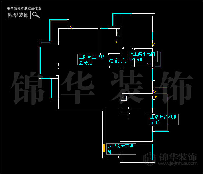(1)主次臥次衛(wèi)過(guò)道凌亂,整體性不高